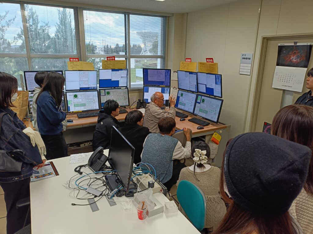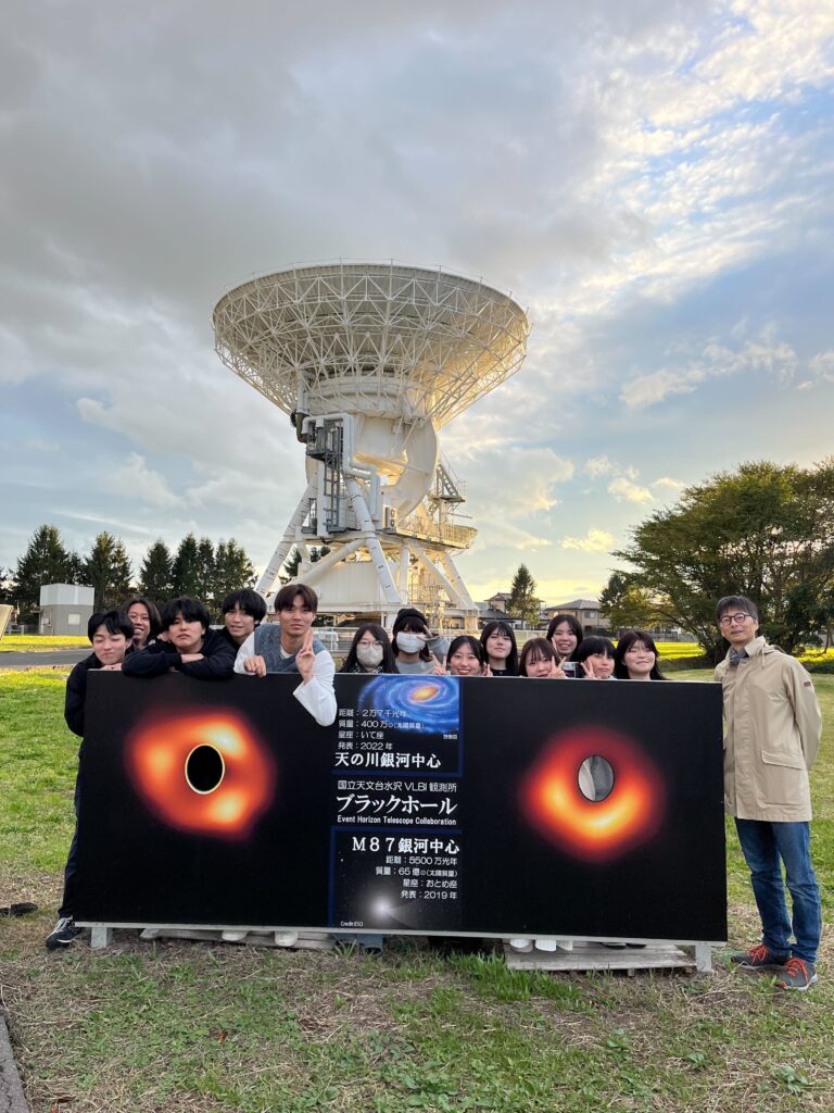 水沢天文台ツアー2025 投稿日: 2025-10-222025-10-22 投稿者: Kentarou 10月20日、毎年恒例の国立天文台水沢VLBI観測所の見学ツアーを行いました。月曜午後3-5限で開講されている理科コース2年生対象の「物理学実験II」で行っているものです。今年は本間所長の代打、廣田朋也さんに講義をしていただき、後半は亀谷さんに観測所、木村記念館、奥州宇宙遊学館を案内していただきました。学生も熱心にメモを取ったり、写真を撮ったり、いい刺激になったのではないかと思います。いいレポートを期待しています!