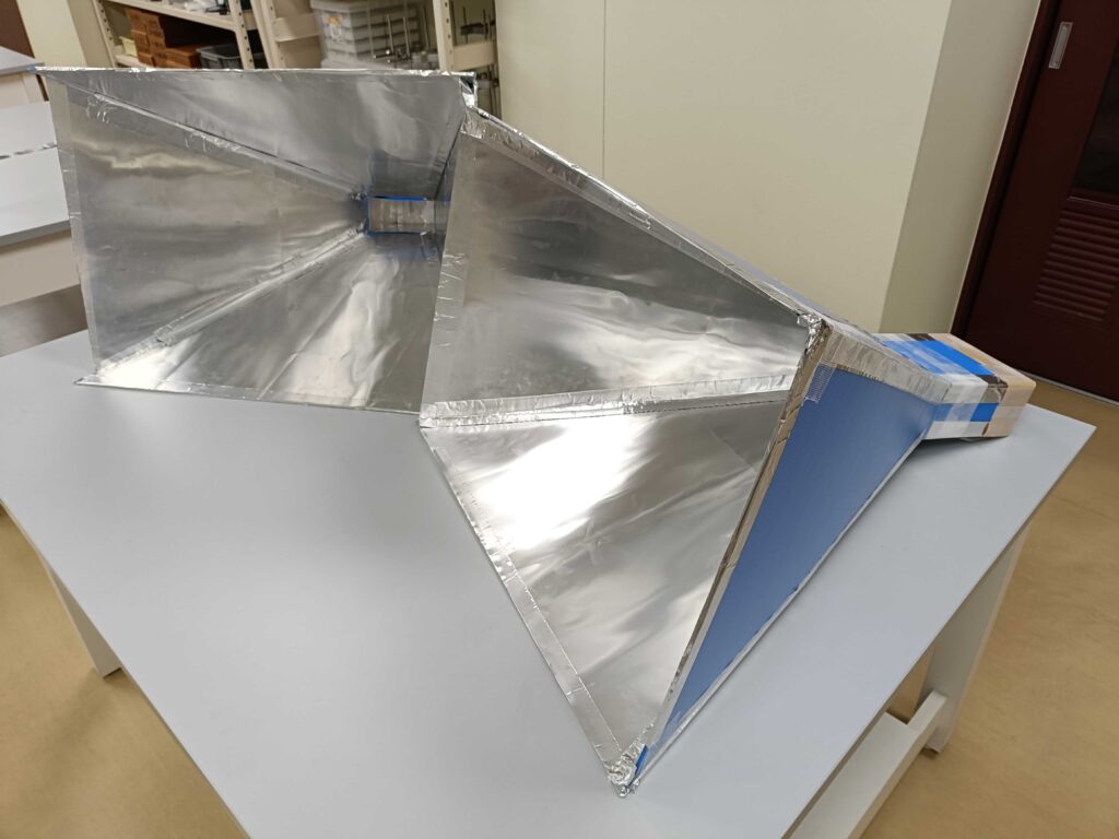 2025年度卒業研究 投稿日: 2025-11-062025-11-06 投稿者: Kentarou 後期が始まってあっという間の1ヶ月。学部4年生の卒業研究も本格化してきました。 先々週には、天の川から来る水素原子の電波を捕らえるための自作望遠鏡のホーンが完成。実際に21cm線が捕らえられるのか楽しみです。 先週はKEK(高エネルギー加速器研究機構)の与那嶺亮さんに来てもらって、岩手山ミュオグラフィーの解析の準備を始めました。初日は熊がキャンパスに現れたため全学休講、急遽駅前のマリオス20階にあるワーキングスペースでのミーティングとなりました。 先週金曜は、熊対策として職員、学生と一緒に教育学部裏の自然観察園の木の実拾い。すぐ裏に立派な栗の木やクルミの木があることを知りませんでした。。。岩手大に着任して6年が経ちましたが、熊で休講は初めの経験でした。
